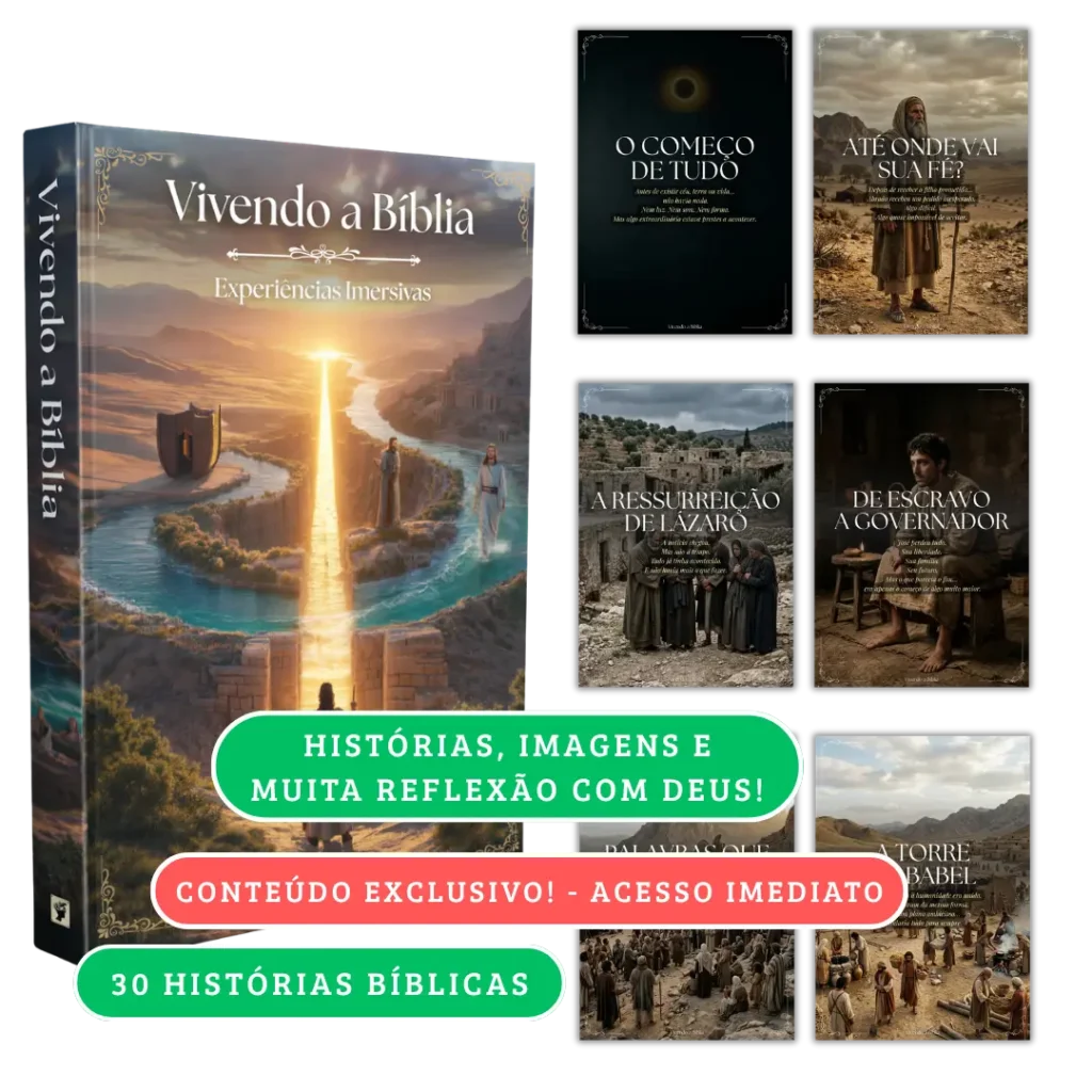 As 30 Principais Histórias Bíblicas com imagens ultra-realistas, narrativa simples e reflexões espirituais.